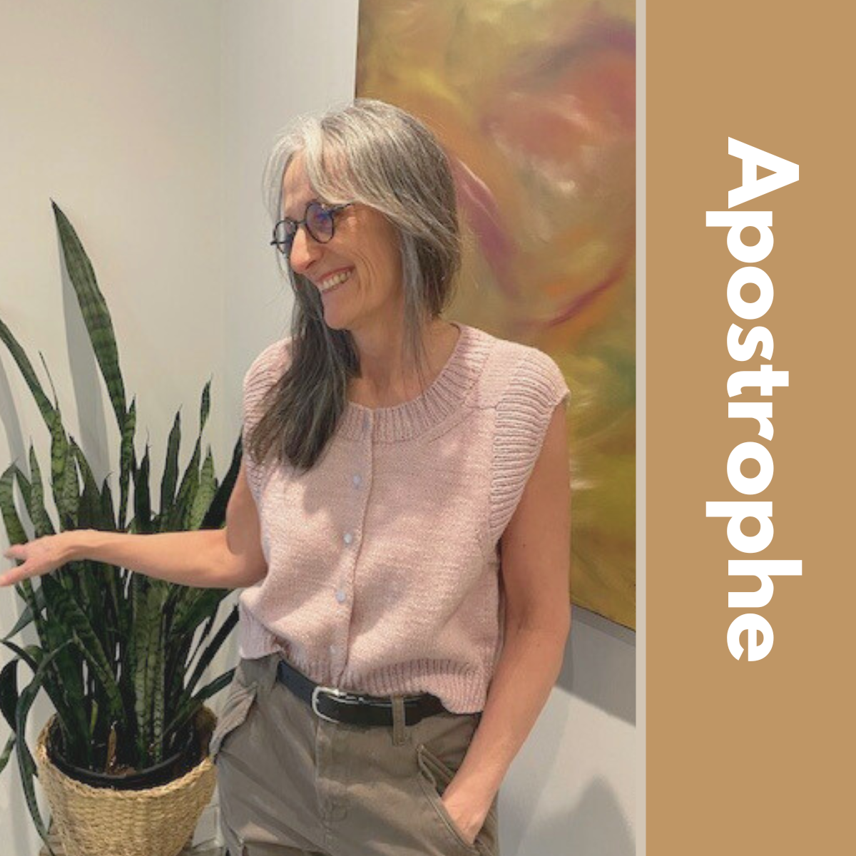 Alliant style et praticité, l’Apostrophe Slipover est un gilet court, sans manches dont les bordures en larges côtes ajoutent du caractère au vêtement. Cette pièce est à porter telle quelle ou superposée à une jolie blouse ou une chemise.