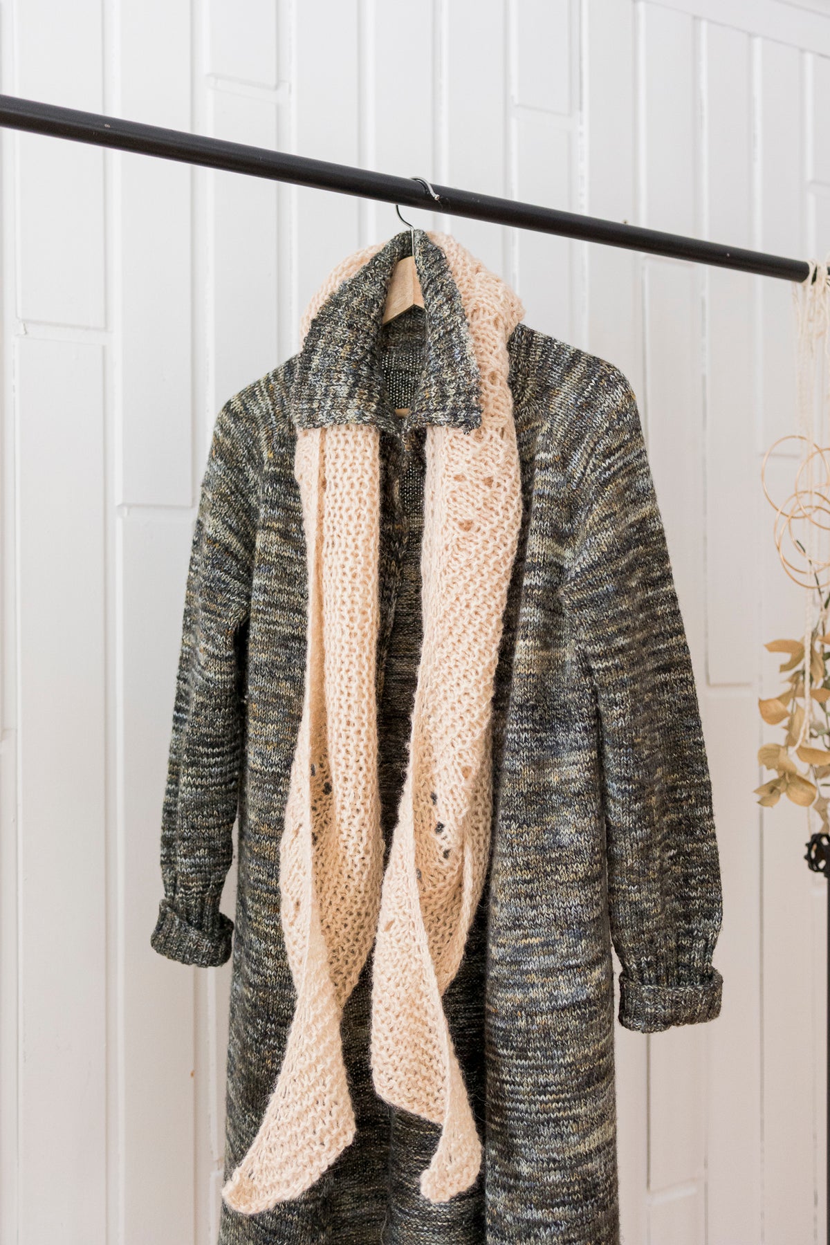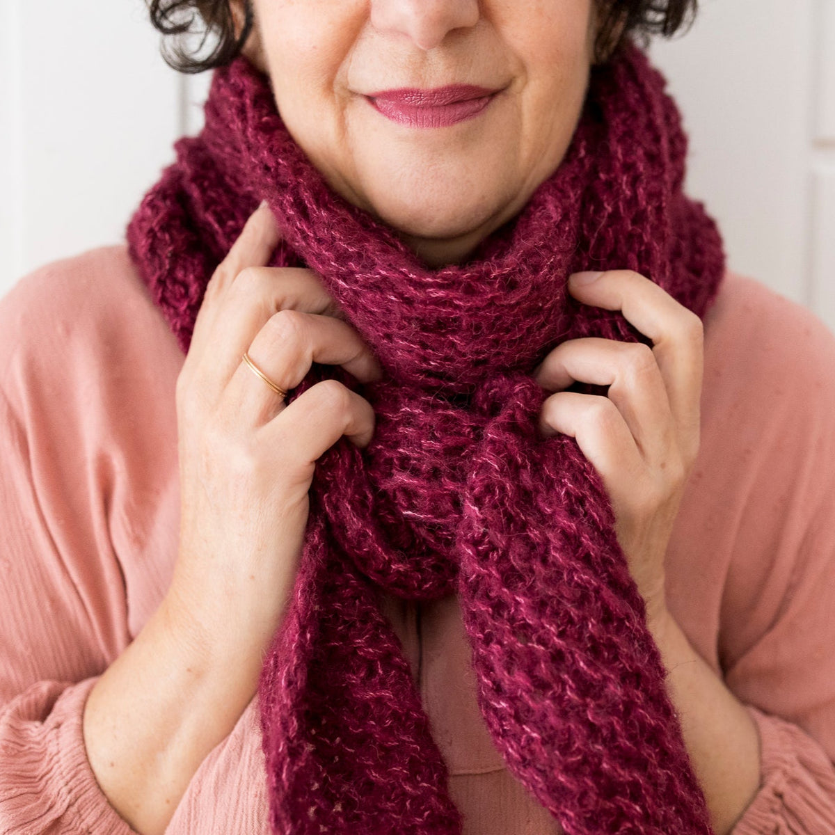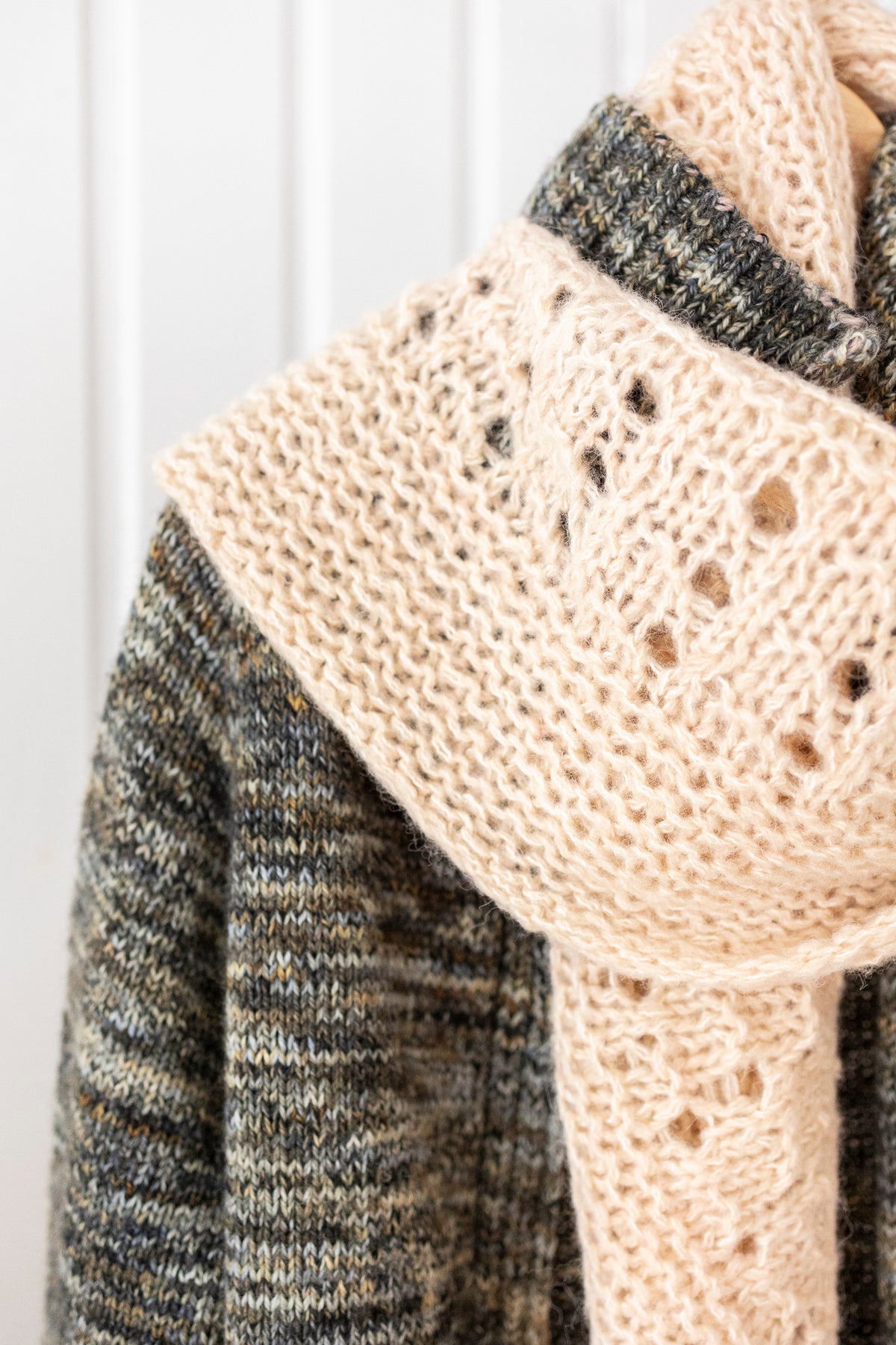 Le châle est tricoté avec deux brins tenus ensembles