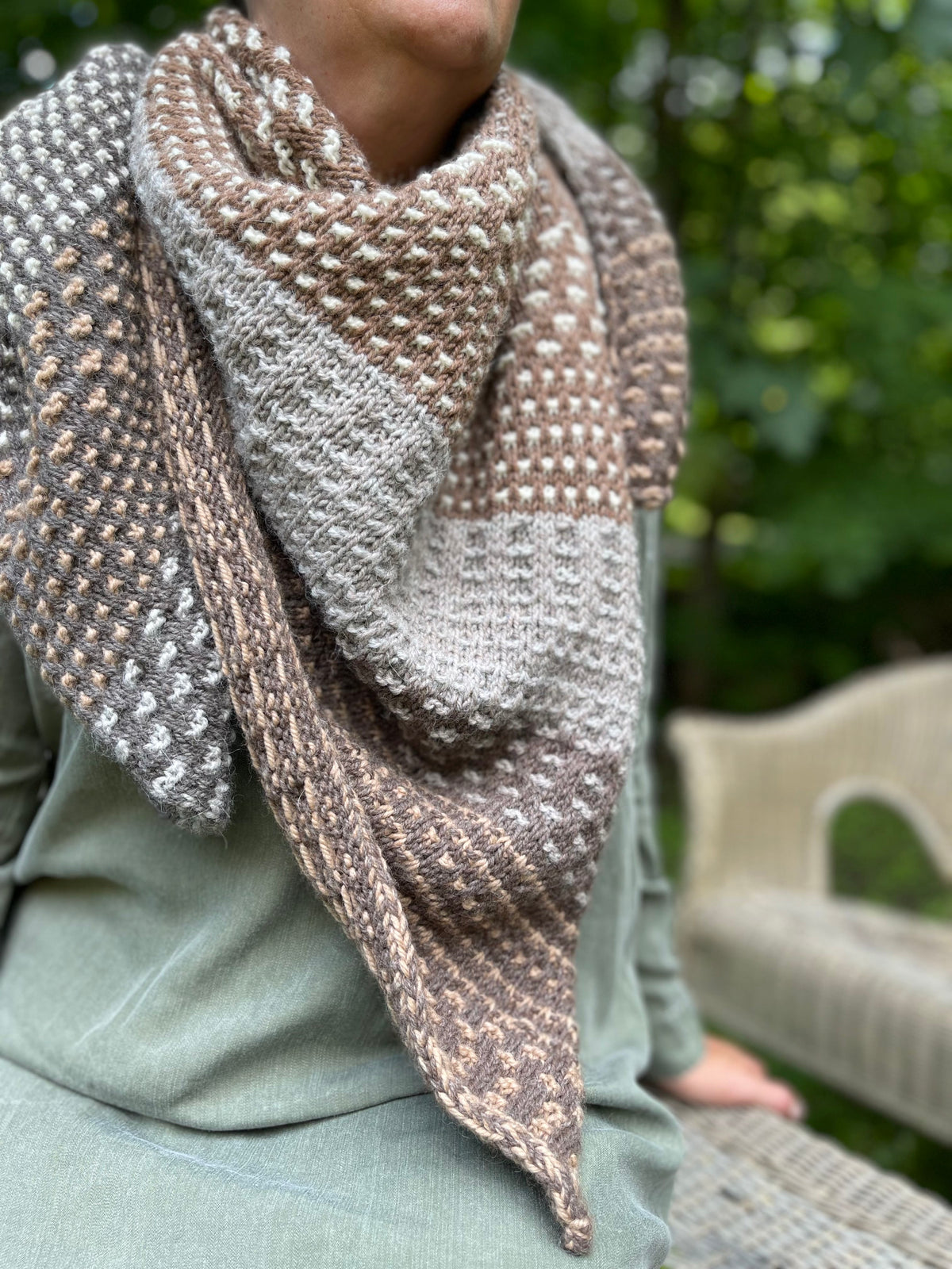Chaque kit de 6 écheveaux contient suffisamment de laine pour tricoter le châle Nightshift de la populaire designer Andrea Mowry ! Ce patron est extra amusant et permet de jouer avec les couleurs.