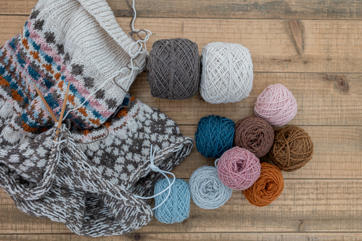 Plutôt que de vous envoyer des balles complètes pour les couleurs contrastantes, nous les avons séparées en quantité suffisante pour réaliser ce chandail. Vous évitez ainsi d'avoir trop de restant de laine et c'est aussi plus économique pour vous.