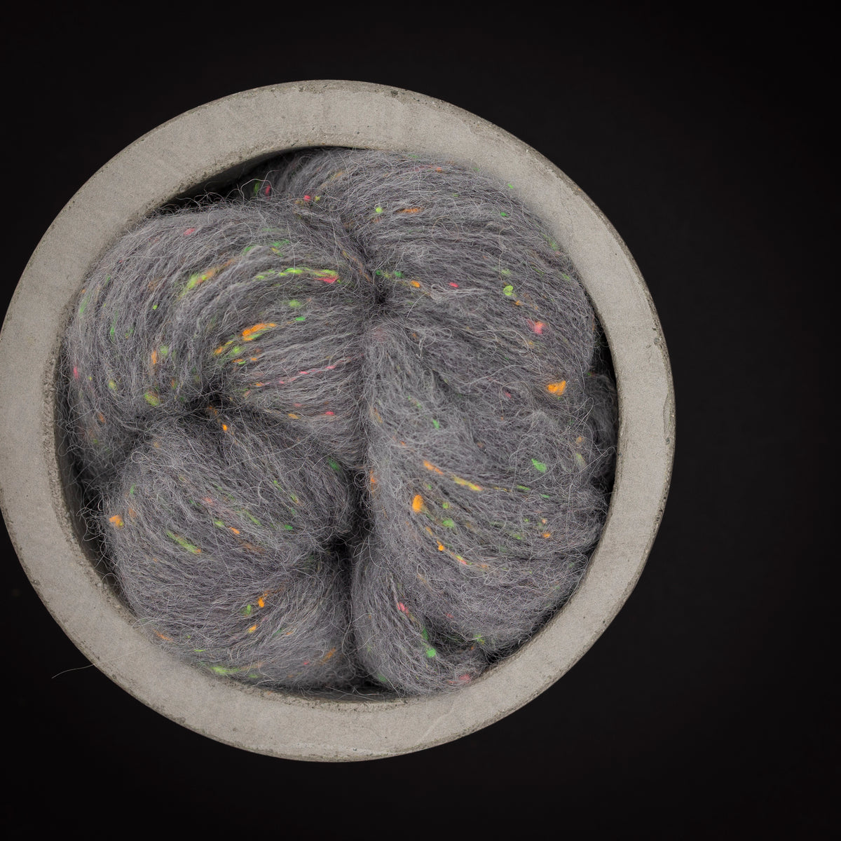 La quantité nécessaire selon la grandeur choisie de Confetto par Fibre Carpe Diem (42% de Mérinos, 32% d'Alpaga superfin, 18% de Donegal Neon, 8% de Lin)