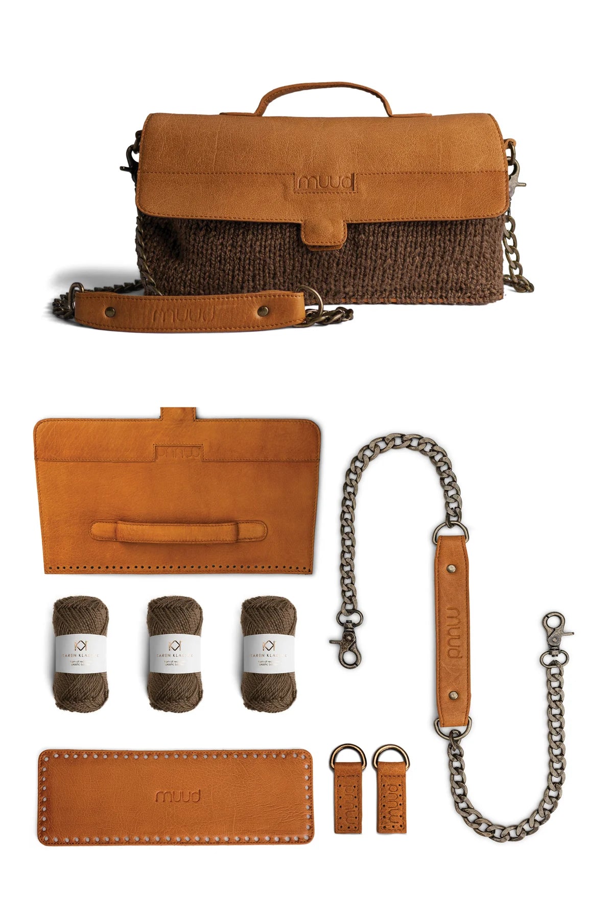Réalisez un sac unique mêlant cuir et tricot grâce à ce kit complet.