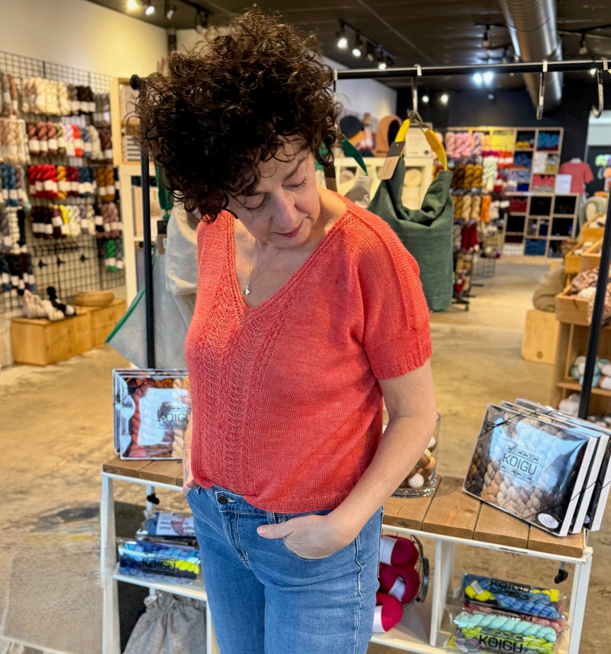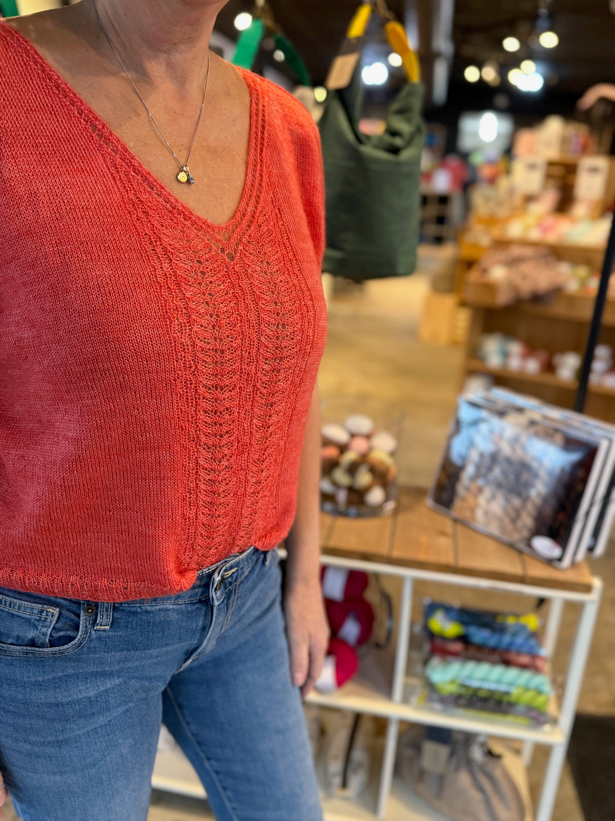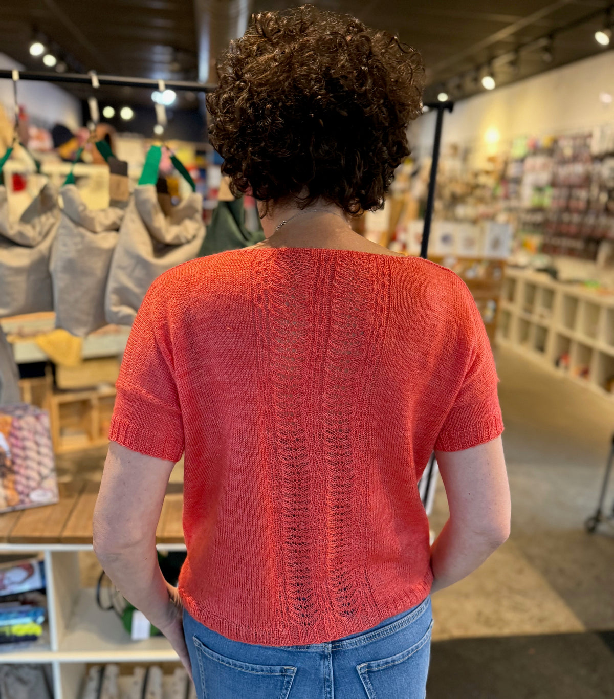 Ce haut ample à épaules tombantes présente des détails câblés en dentelle et des manches courtes. Adventitious possède un diagramme facile à mémoriser sur tout le corps, ce qui en fait un tricot très relaxant. Ce haut cropped est tricoté de bas en haut et en rond.