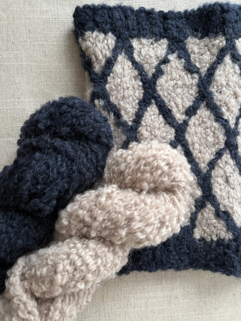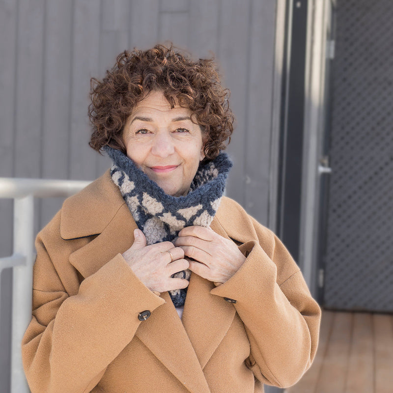 The Jorvin cowl is both an elegant and comforting accessory, perfect for facing cold days in style. Its textured pattern highlights the Orséto yarn by Fibre Carpe Diem, a soft and generous bouclé yarn that adds volume, warmth, and beautiful depth to the fabric.