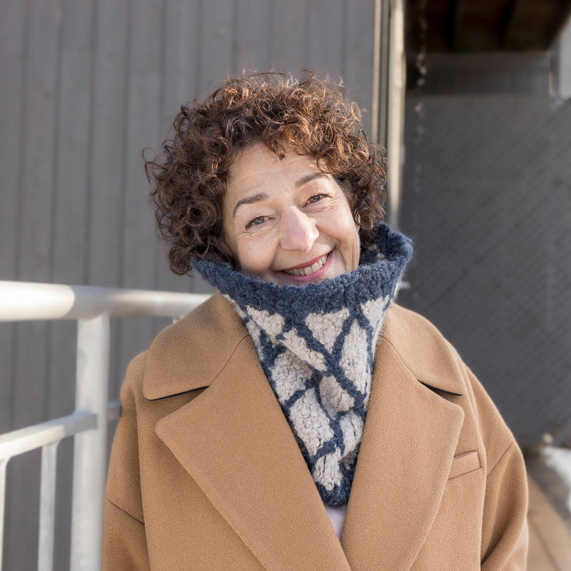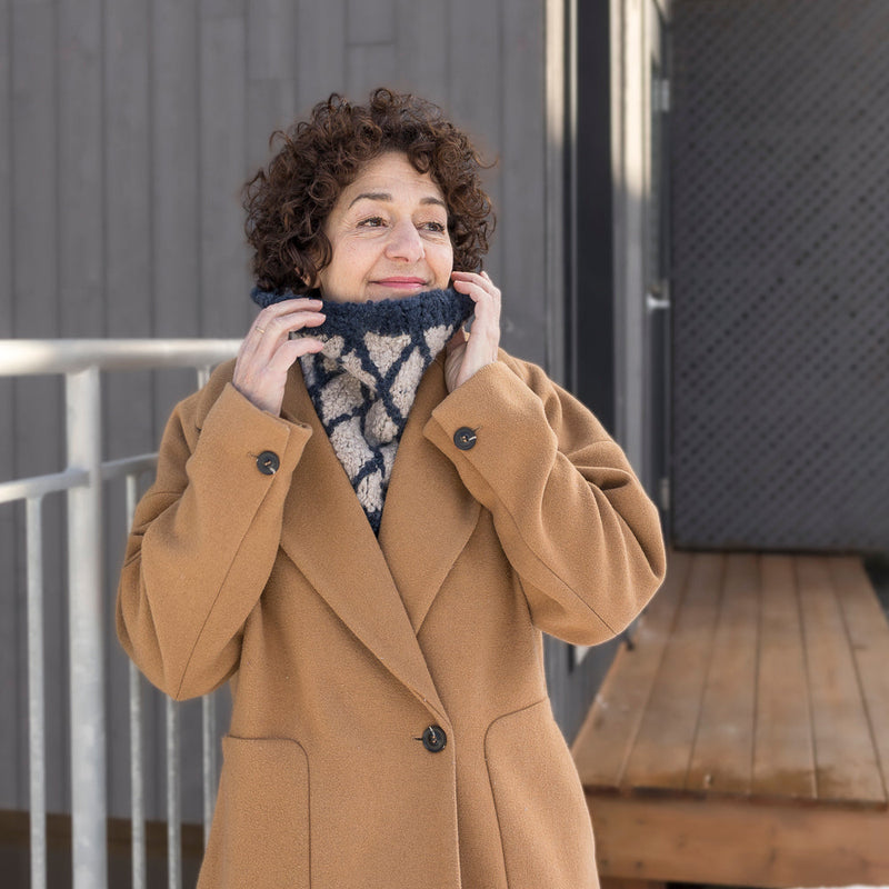 Knit in the round, the Jorvin cowl sits close to the neck for optimal protection from the cold, while remaining comfortable and easy to slip on.
