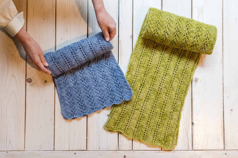 Foliage is a long scarf knitted in a yarn made of baby alpaca, Pima cotton, and merino. You can modify the length of the scarf made of two sections knitted in two different stitch patterns. You can make a shorter version or a longer one. It’s a perfect accessory for cold seasons.