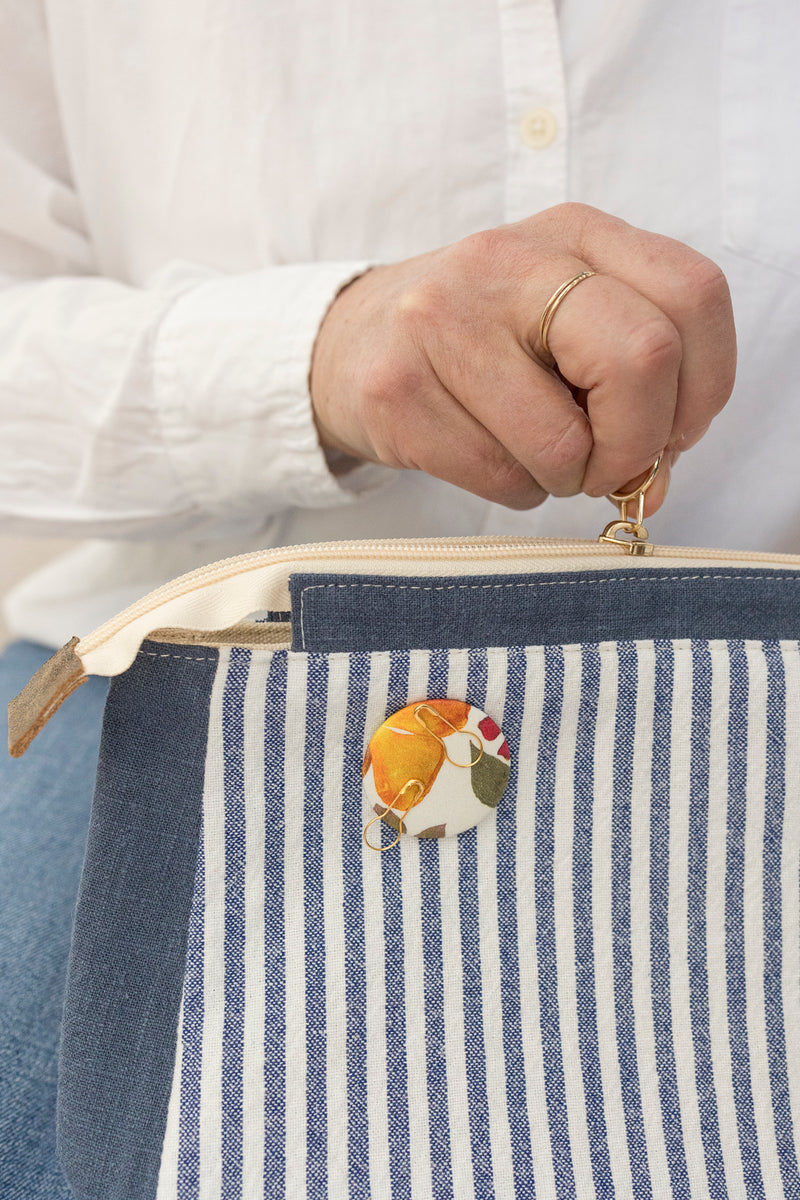 Attached to your knitting bag, it securely holds stitch markers, scissors, and yarn needles—no more searching at the bottom of your bag.