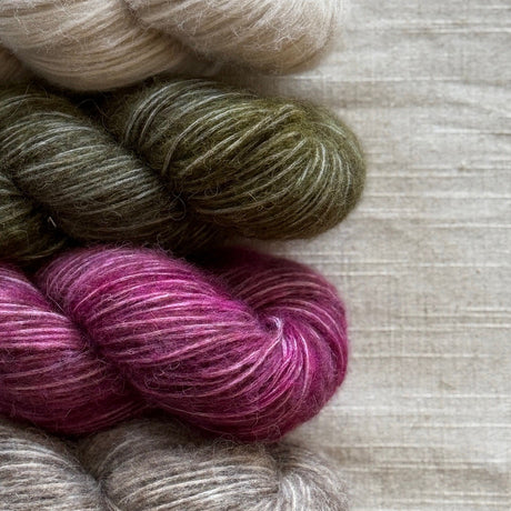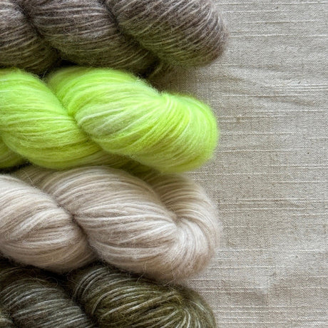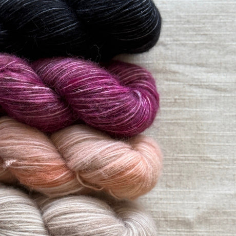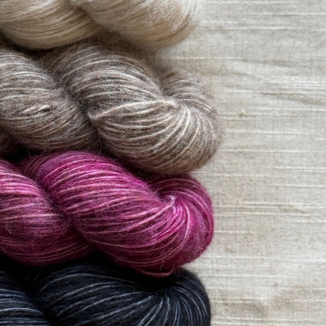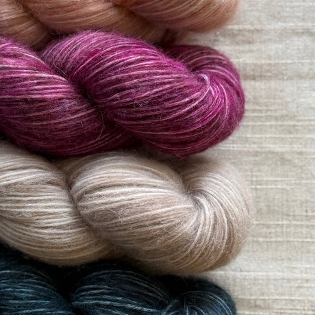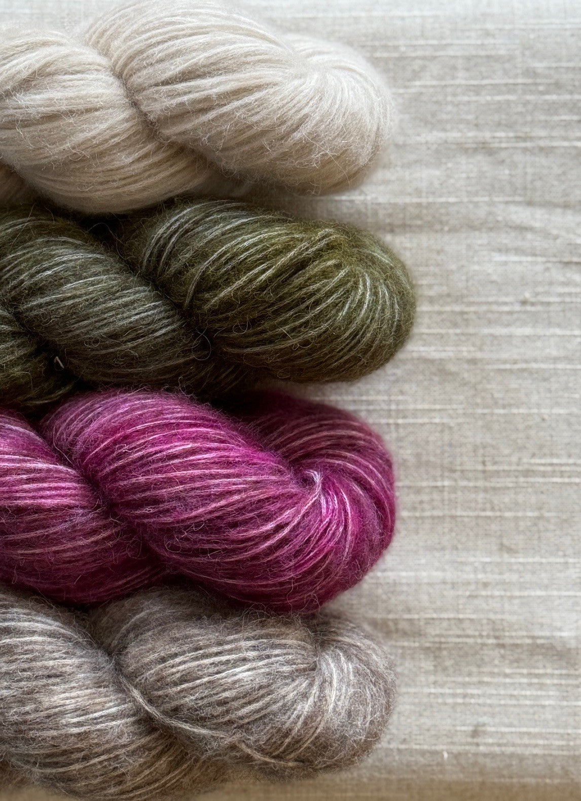 La quantité nécessaire selon la grandeur de laine Éole par Fibre Carpe Diem (51% bébé alpaga, 49% coton Pima)