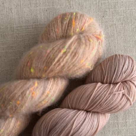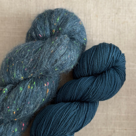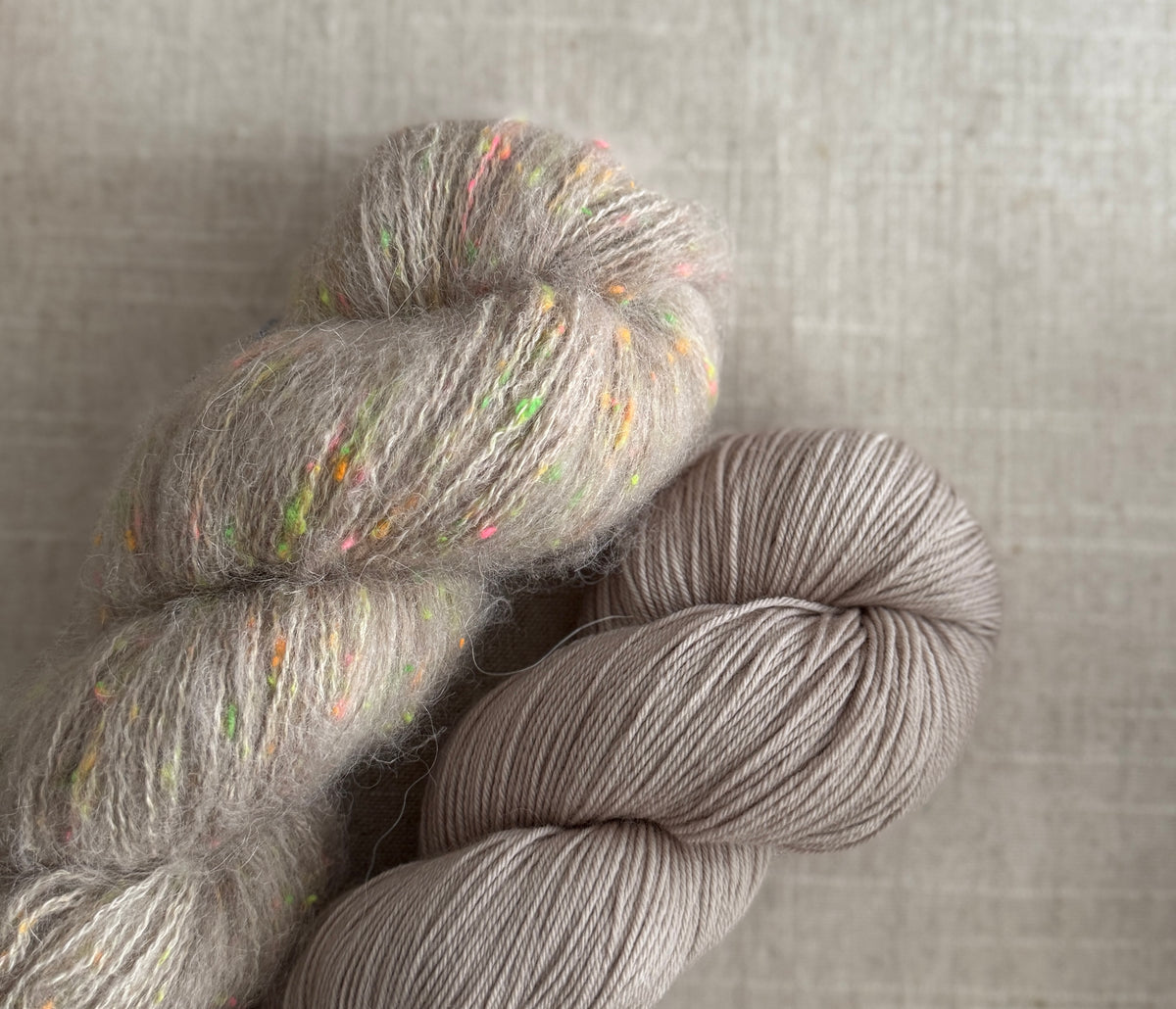 Le fil Confetto apporte de subtiles touches colorées qui animent la surface du tricot, tandis que le Mérinor fingering assure une belle tenue et un confort enveloppant. Ensemble, ils créent un tissu moelleux, agréable à porter au quotidien, sans être trop épais.