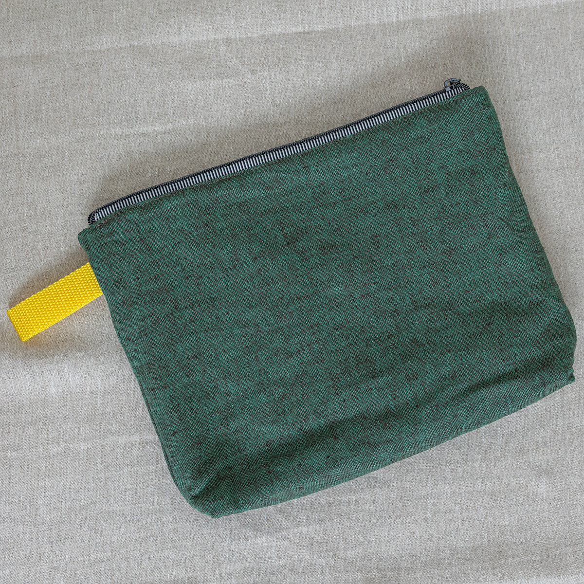Pochette parfaite à glisser dans un grand sac ou joli petit sac à main, la Passe-Partout est multifonctionnelle. Glissez-y votre projet de tricot en cours, vos pelotes et vos écheveaux de fibres. Assez grande pour accueillir un chandail léger, un châle, des chaussettes ou une tuque, bref, un projet de petite ou moyenne taille. Et que dire de sa fermeture à glissière! Un contraste audacieux.