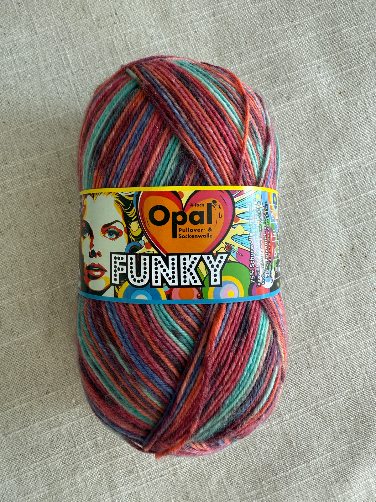 Opal Funky est une laine à chaussettes dynamique et expressive, caractérisée par ses couleurs vives et ses rayures audacieuses. Chaque pelote crée des motifs joyeux et rythmés au fil du tricot, parfaits pour des chaussettes originales qui ne passent pas inaperçues.