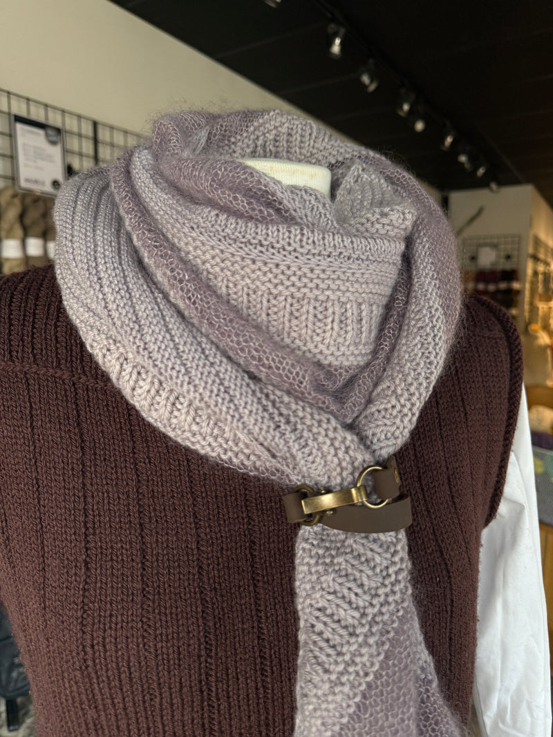 Volute est un châle en croissant unique qui marie trois fils différents pour créer des