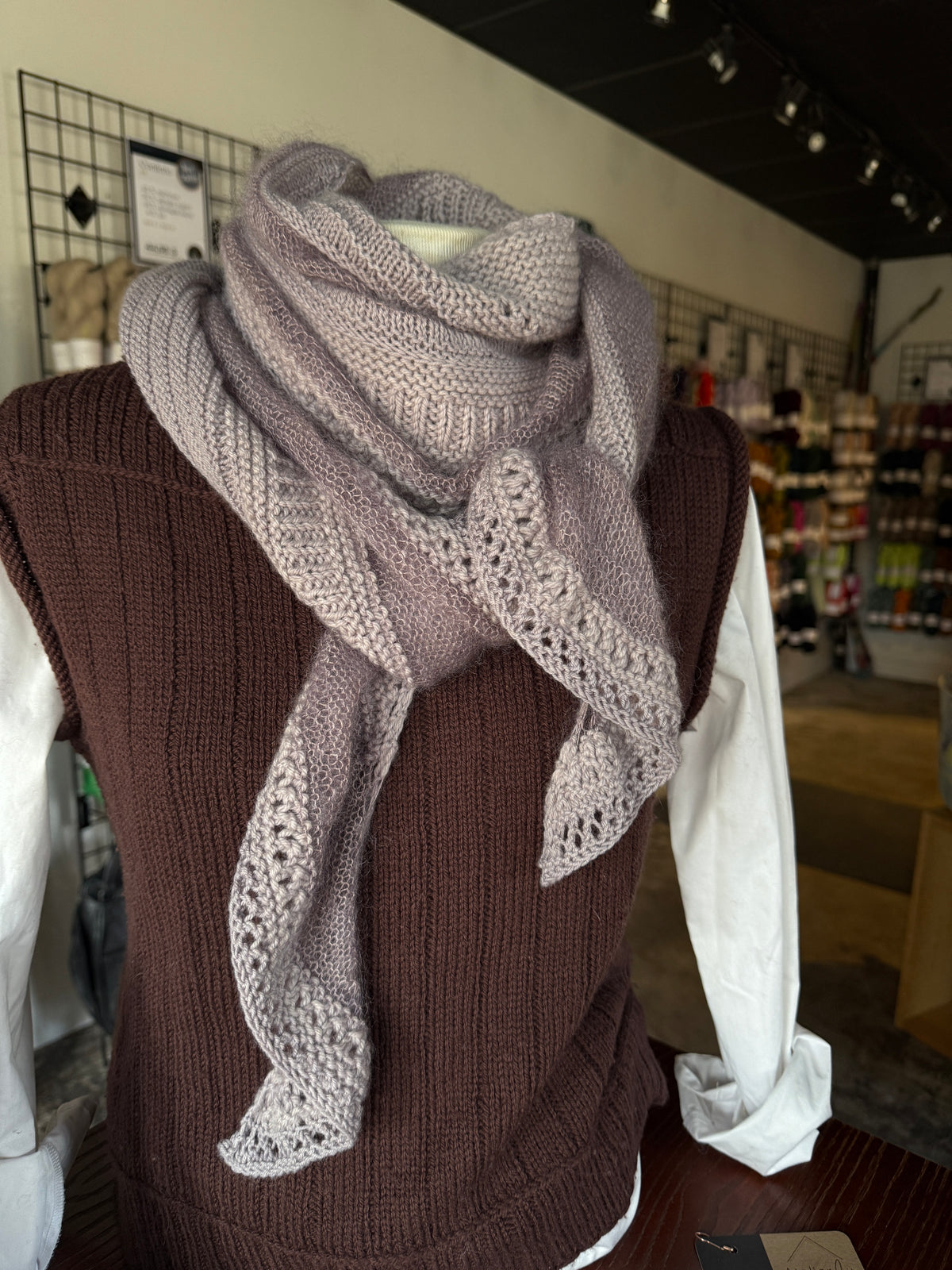 Vous pouvez aussi vous procurer le Kit de Tricot - Châle Voluté par Henriette Corbeil, qui inclus la laine et le patron. lien pour le kit