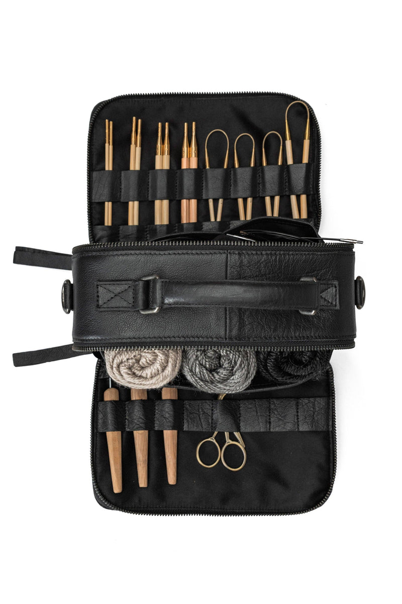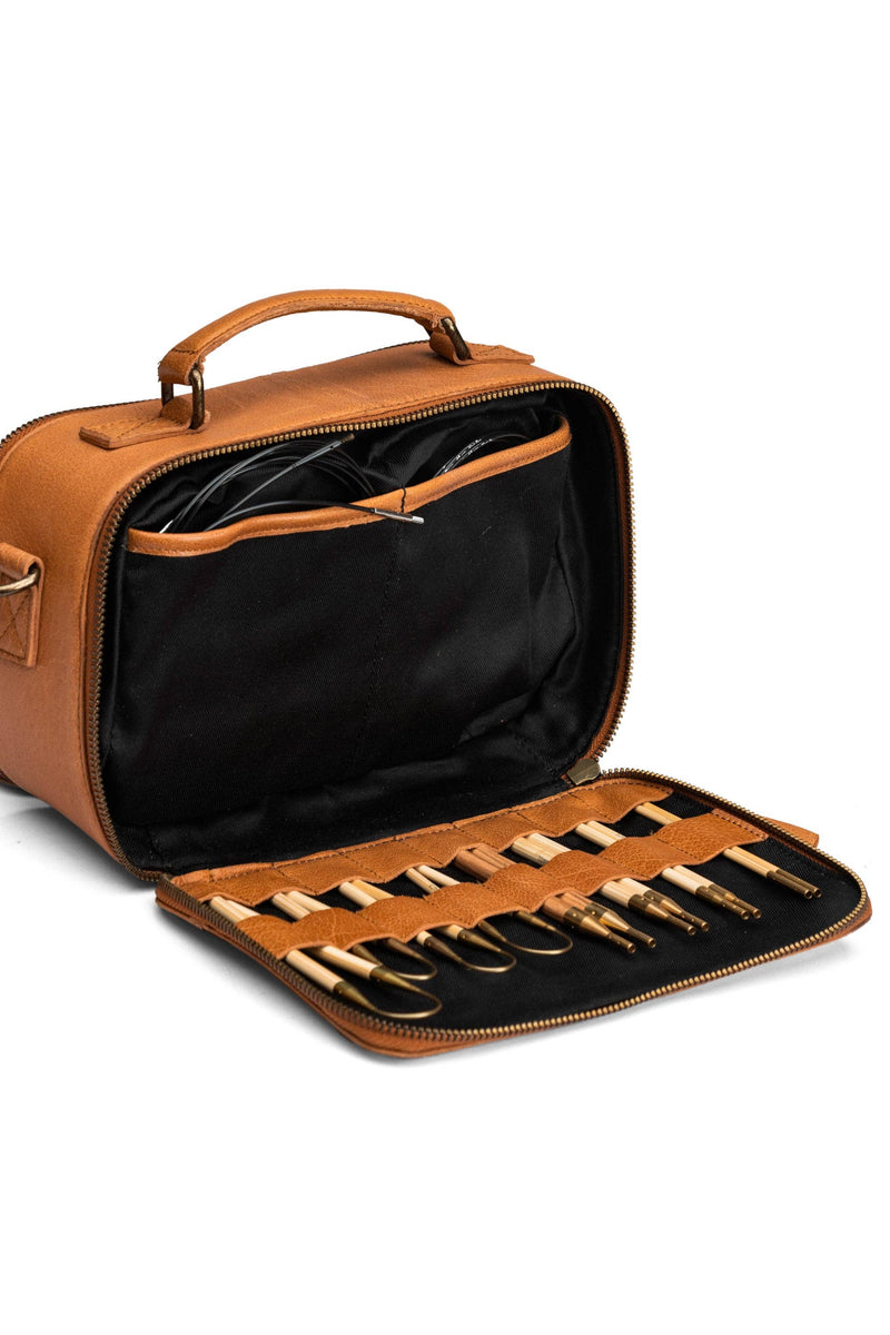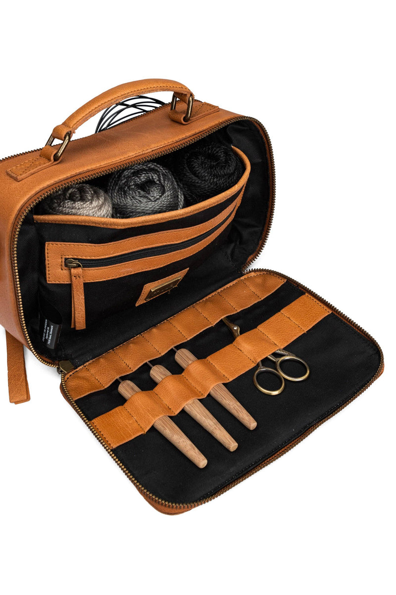 Lilly est un magnifique sac en cuir de muud, conçu pour garder votre matériel de tricot bien organisé lorsque vous êtes en déplacement. Le sac est fabriqué à la main et présente des détails fonctionnels vous assurant un sac élégant et une solution de rangement pratique pour vos outils.