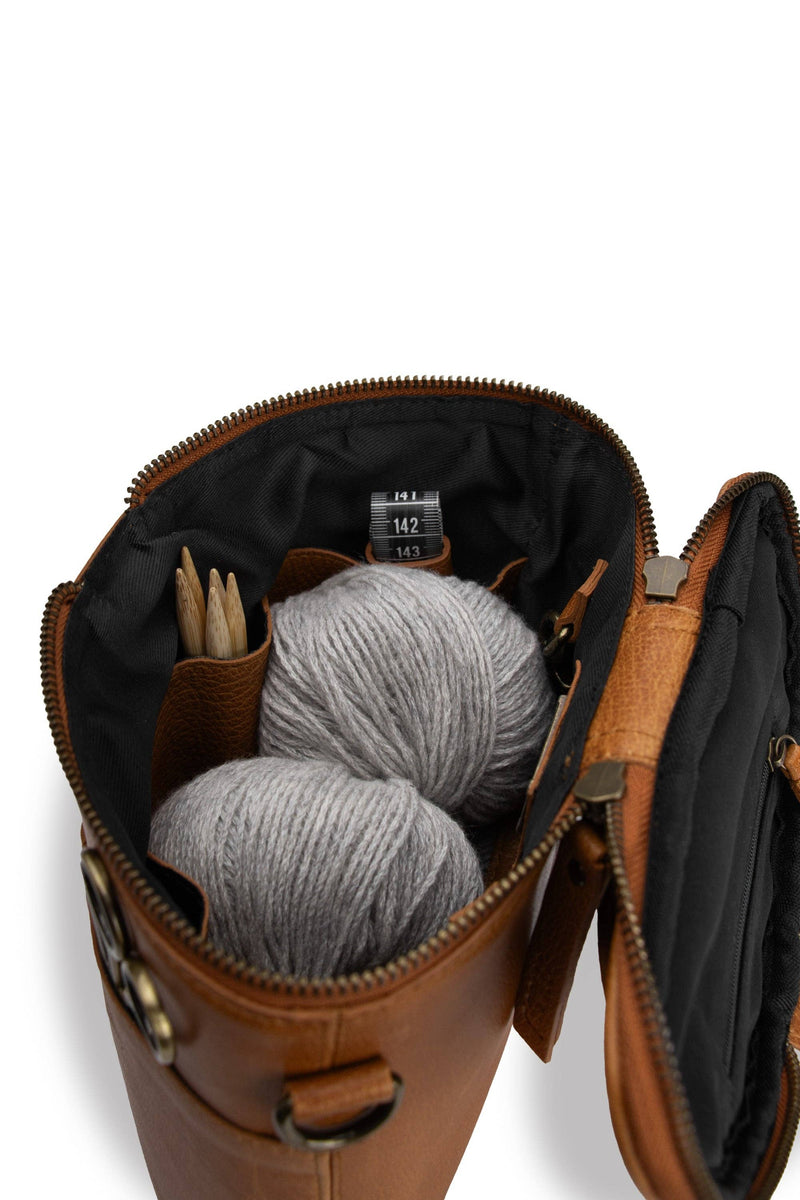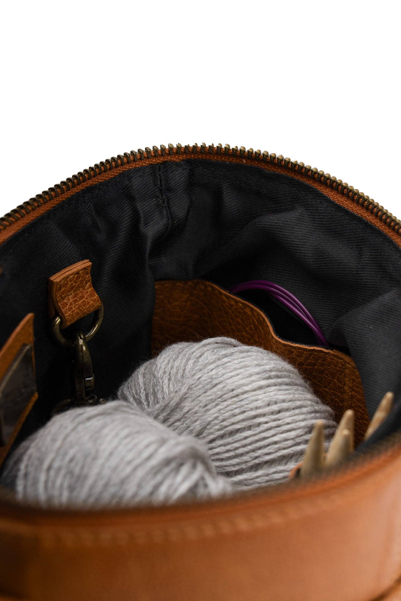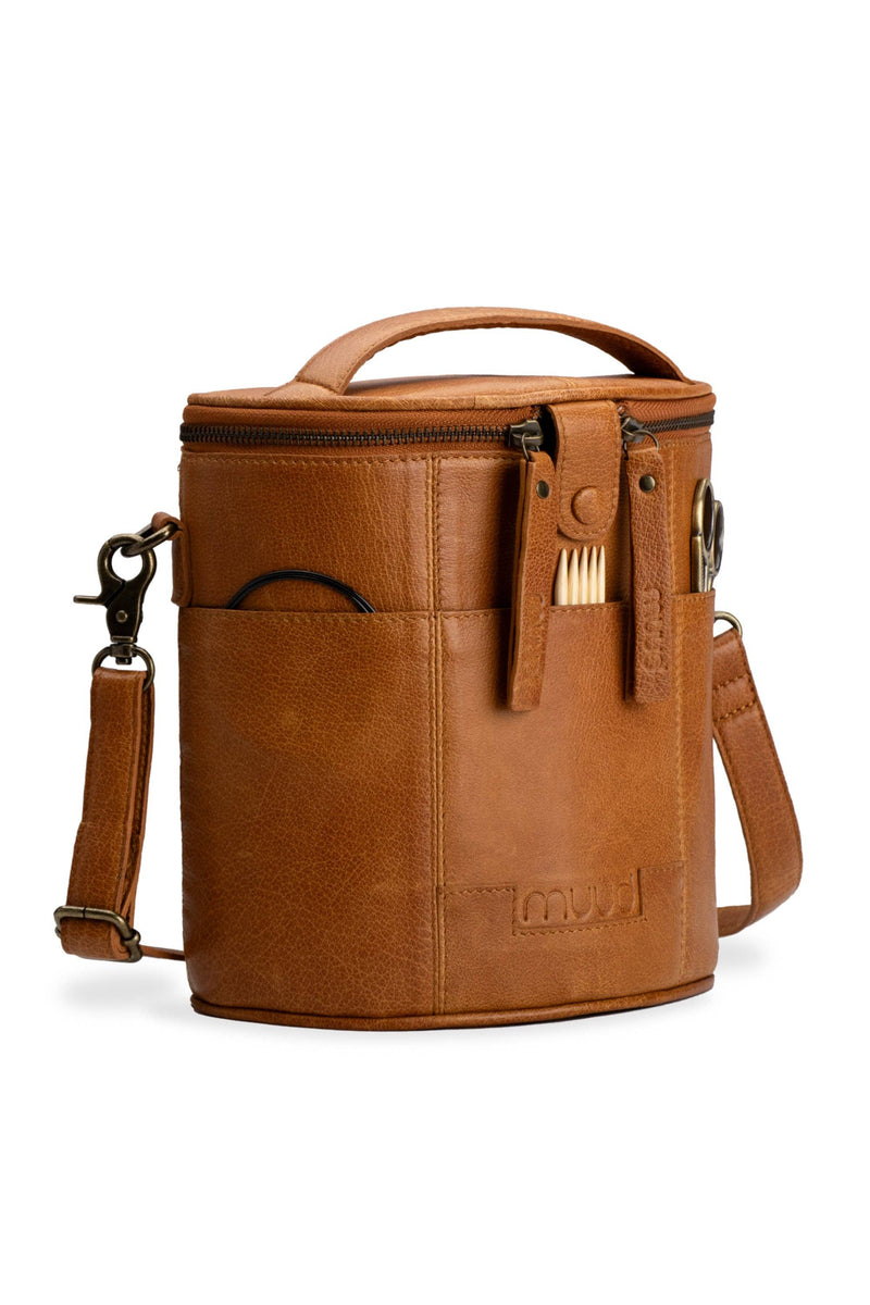 Grace de muud est un sac à projet en cuir élégant et fonctionnel, conçu dans une belle forme de croissant. Le sac est parfait pour ranger et transporter vos projets de tricot et de crochet, offrant à la fois des caractéristiques pratiques et un look élégant. La bandoulière réglable offre de la flexibilité, facilitant le transport du sac de manière à vous convenir.